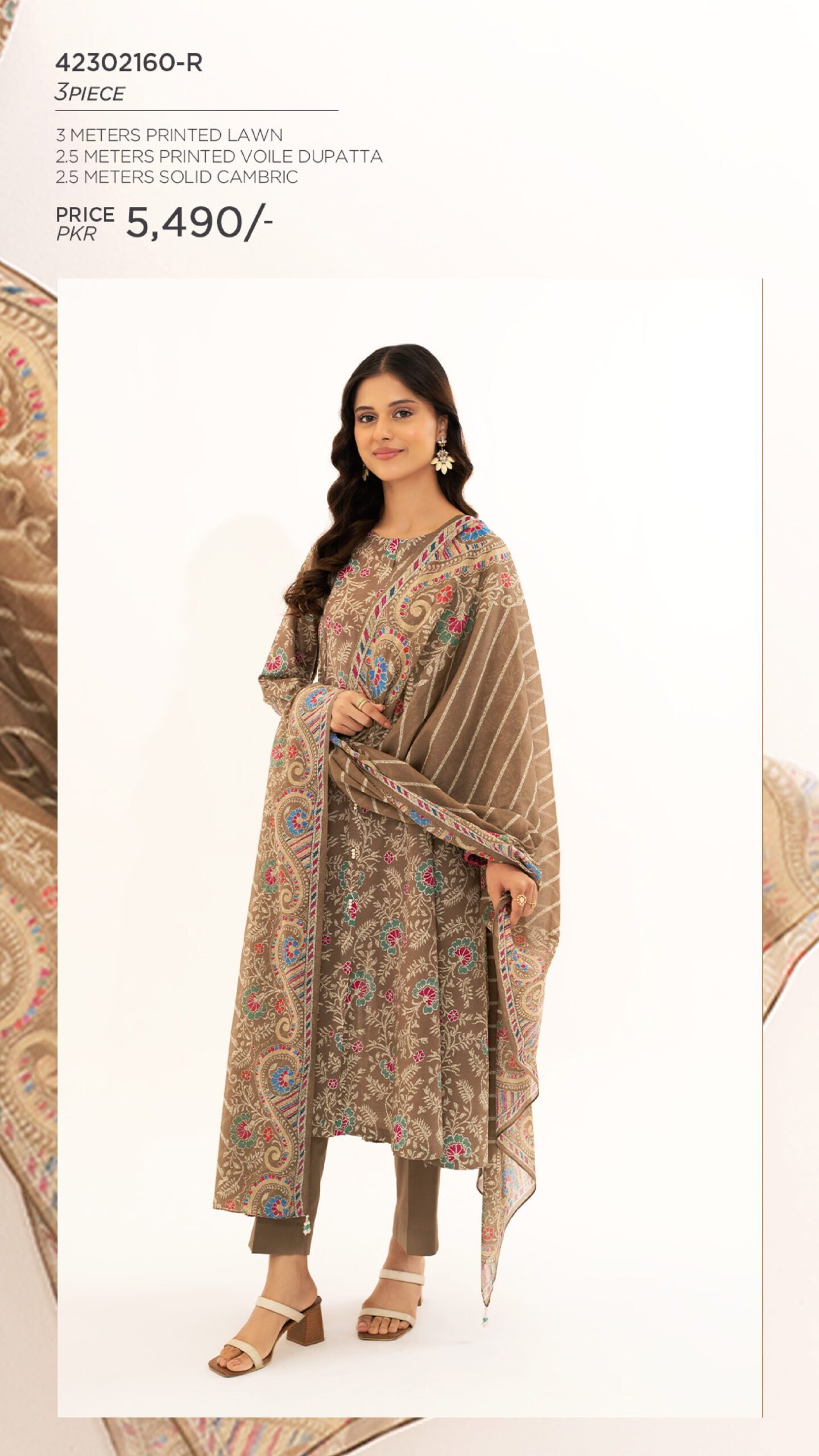 This collection includes 10 beautiful designs, each crafted with a luxury digital printed lawn shirt, paired with a dyed cambric trouser and a luxury digital printed lawn voile dupatta. The soft lawn fabric and vibrant prints make it ideal for daily wear, summer gatherings, and premium retail displays.