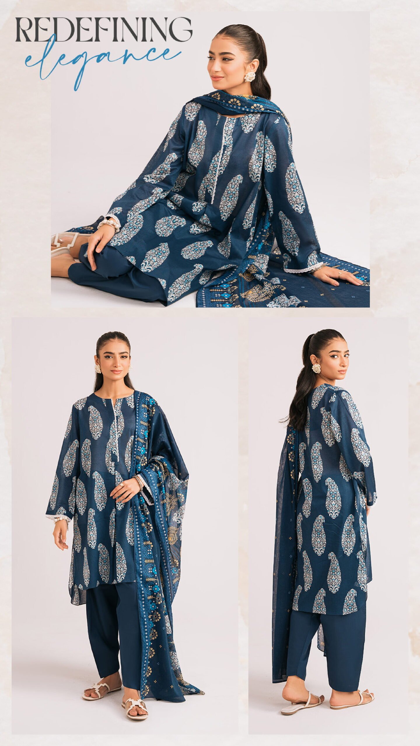 This collection includes 10 beautiful designs, each crafted with a luxury digital printed lawn shirt, paired with a dyed cambric trouser and a luxury digital printed lawn voile dupatta. The soft lawn fabric and vibrant prints make it ideal for daily wear, summer gatherings, and premium retail displays.
